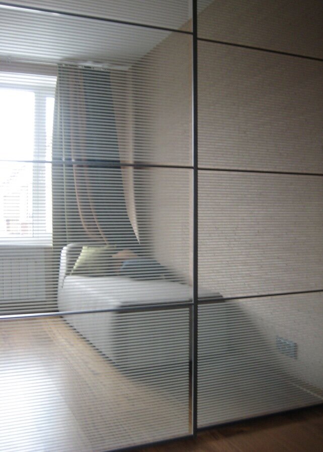 Логика была такова: для начала следовало срочно избавиться от узкого коридора, ликвидировав длинную стену и «отрезав» небольшой кусок от кабинета/детской, в результате чего, образовалась открытая гостиная, отделенная от прихожей нишей, в который удачно встал шкаф-купе с зеркальными дверями. Затем была урезана часть стены, отделявшей гостиную от кухни, и за счет образовавшегося пустующего пятачка, было решено расширить ванную комнату, предварительно объединив ее с туалетом и выстроив стену по диагонали, что позволило не блокировать вход на кухню. В итоге число дверей на этом участке сократилось до двух, поскольку в кухне решили оставить открытый проход.