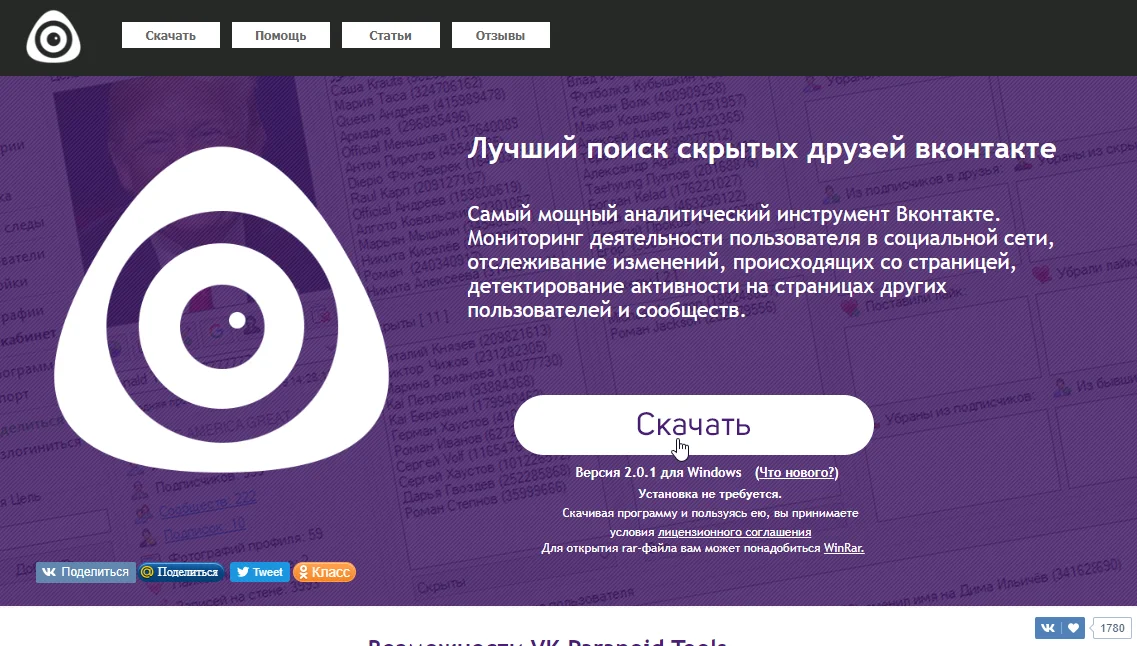 Извлекаем программу из архива и запускаем файл VK Paranoid Tools.exe. Если у вас не получилось открыть архив, то загрузите и установите архиватор WinRar.