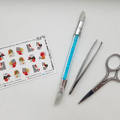 Дизайн вырезаем по контуру и кладем на смоченный в воде ватный диск подложкой вниз.