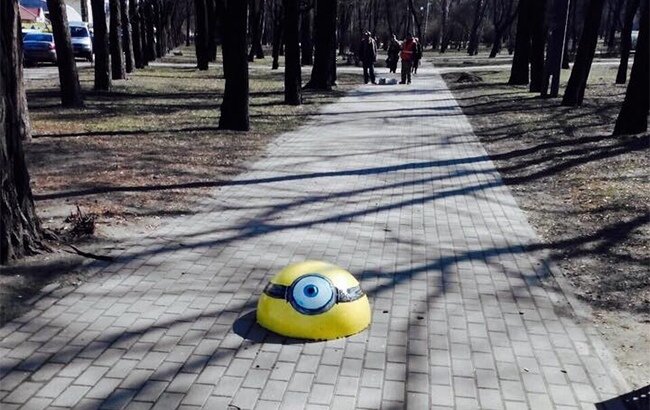 В Выборгском районе Петербурга горожане могут встретить на улицах персонажей мультфильмов “Гадкий я” - миньонов. Смешные мультяшки сидят вдоль тротуаров и пешеходных дорожек. Пока миньонов - загадочных существ непонятного вида - заметили только в Озерках. Их немного, но если эти ребята придутся по душе местным жителям, то желтых очкариков "в небесно голубой джинсе" станет больше, совсем, как у злодея Грю. Местные ТСЖ решили внести разнообразие в облик своего района и нарисовали на полукруглых ограничителях парковки миньонов, а кое-где и птичек из игры Angry Birds. Чтобы узнать, стоит ли “заселять” улицы “прислужниками злодея Грю”, в районной группе "Шувалово - Озерки | Выборгский район | СПб" ВКонтатке даже организовали голосование по этому вопросу. На данный момент, более 90% проголосовавших поддерживают идею. "Мегаполис" делился со своими читателями историей другого мультперсонажа. Питерский художник loketski груду мешков с пескоцементом, которой укрепили подмытый участок на набе