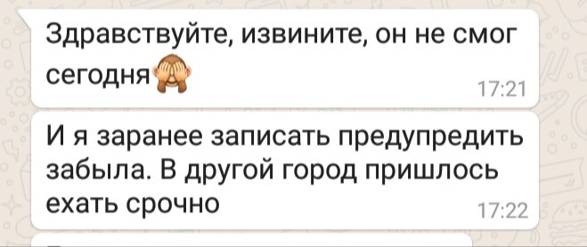 В общем, договорились о времени. Являюсь я, как Бобик, на первое занятие – а нету ученика. Пишу-звоню маме – а ноль реакции. И только ближе к вечеру мне приходит вот что:
