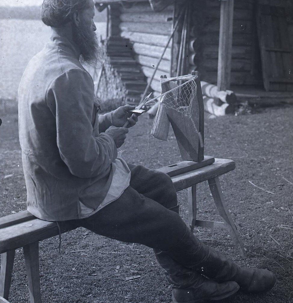 Наши мужчины не вязали на спицах и не состояли в чулочных гильдиях, как это было на Западе, но тем не менее к вязанию тоже имели отношение, причём издревле. Будучи охотниками и рыболовами они вязали необходимые для промысла снасти — силки и сети. На Русском Севере было распространено вязание иглой, одна и самых древних техник — «архаическая петля», по сути это полотно из узелков, которое невозможно распустить. Таким способом мужчины вязали себе рукавицы, носки, шапки. Занятие было сугубо мужским и рассматривалось как неотъемлемая часть основной деятельности.