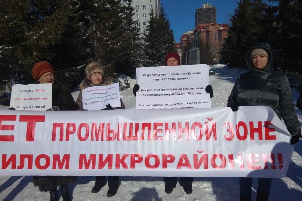 Очередная акция протеста состоялась сегодня, 7 марта, в центре города на площадке возле театра «Глобус» Месторождение Кучино было разведано ещё в 1999 году, в 2014 году его включили в перечень недр и провели аукцион, который выиграло ООО «Старица». По мнению участников пикета ООО «Старица» ведет подготовку площадки для освоения месторождения Кучино в Ленинском районе Новосибирска с нарушениями. – По участку, который недавно был предметом спора в арбитражном суде согласован технический проезд, по которому интенсивно ездят грузовые машины, – заявила «Прецеденту» одна из противников разработки песчаного карьера Анастасия Сергеева. – При этом отсутствует проект санитарно-защитной зоны, территория месторождения не огорожена. Так нарушаются права тех, кто живет по соседству с местом разработки будущего карьера. Предыдущий пикет активисты провели в начале марта возле здания Управления Роспотребнадзора по Новосибирской области. По заявлению пикетчиков надзорное ведомство слишком сильно сократи