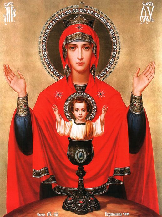 Икона БогоМатери НЕУПИВАЕМАЯ ЧАША явилась миру как неистощимый источник помощи для тех, кого неодолимо влечёт губительная страсть винопития. Явление образа произошло в 1878 году. Одержимый недугом пьянства крестьянин Ефремовского уезда Тульской губернии, заслуженный отставной солдат пропивал всё, что находил в своём доме, и практически дошёл до нищенского состояния. От непомерного пьянства у него даже отнялись ноги, но пить он не переставал.