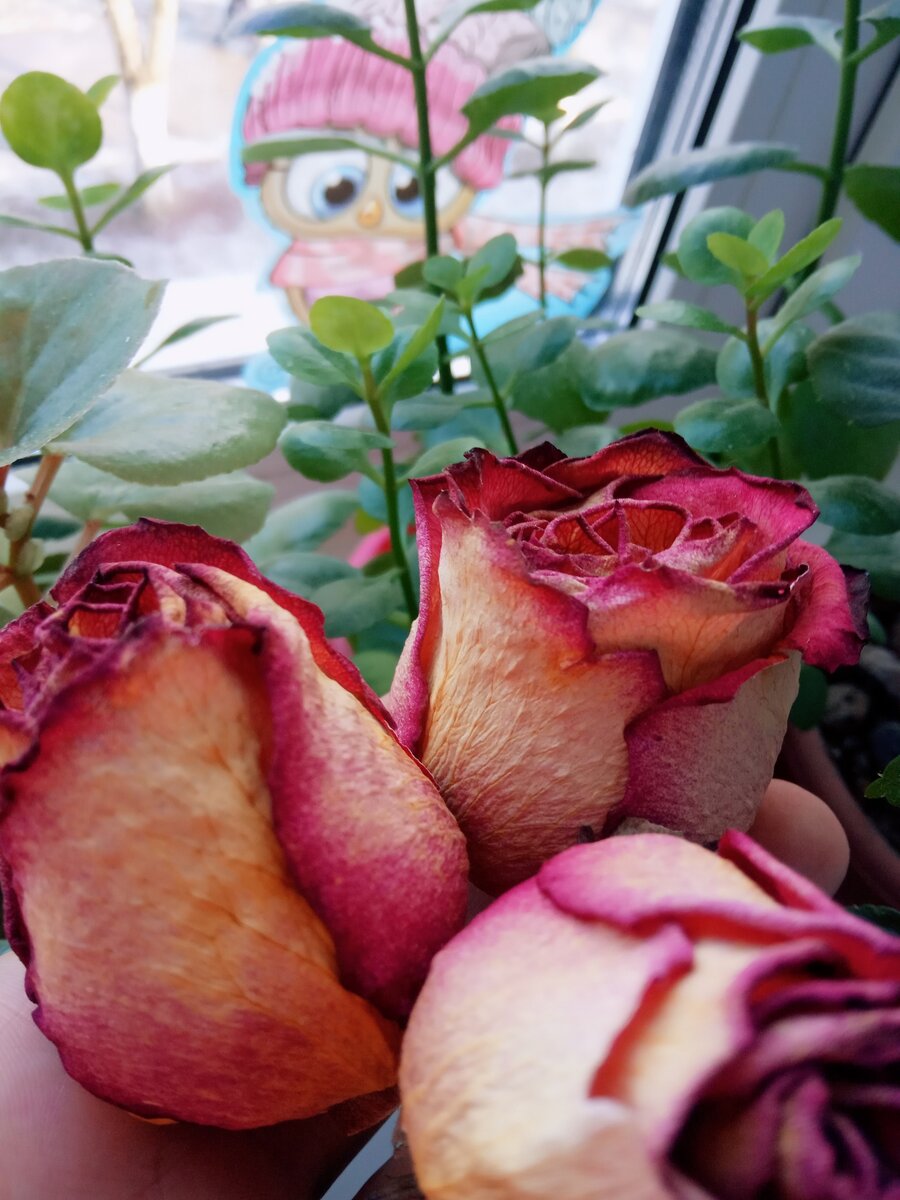 В этой статье я подкину вам пару советов и идей засушивания цветов. Идея №1 Мы берём листочек бумаги складываем его пополам, распределяем лепестки, закрываем листочек и вкладываем в книгу. Совет: если хотите, что бы лепестки быстрее «высохли», то положите книгу на батарею. Идея №2 Я называю это «естественный» способ, обычно я так поступаю с розами. Я просто жду, когда они засохнут. Я не хочу их видеть в плоском виде, мне нравится их природная оболочка. Так они не деформируются и сохраняют свой цвет. Идея №3 Здесь понадобится утюг. Берём листок бумаги, вкладываем туда-то что нам нужно засушить, и закрываем. Проходимся пару раз утюгом и меняем бумагу, и так до тех пор, пока вся влага не выйдет. Главное перед тем как проходить утюгом нужно убедится, что все лепестки хорошо развёрнуты и не разочаровываться, если вдруг какой-нибудь лепесток «свернулся». Надеюсь вам было интересно и занимательно, буду рада за лайки. А какими вы способами пользуетесь-напишите в комментариях) Если ва