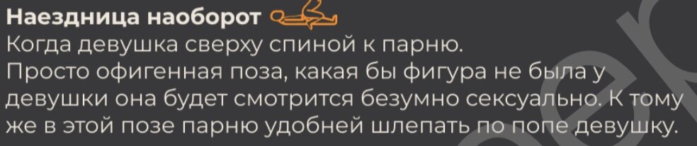 Статья для читателей старше 18 лет. Заповеди отличного m😛инета👇🏻 «Займи красивую позу» 🤸🏻♀️-не такую 😄 Не надо лежать подпирать голову рукой или сидеть облокотившись на его колено , как на барную стойку. Все , любая мелочь должна выглядеть сексуально -это и отличает сексуальную девушку от обычной. Даже если ты устала и встаешь с колен , то делай это возбуждающе. «Не нужно глубоко» Не все парни любят дикий горловой минет , лучше больше уделять внимания ласкам , а именно облизыванию golovki , проведите языком вдоль всего ч|\ена , мастурбируй во время всего процесса. «Чем медленнее, тем лучше» Не спишите, ведь никто не заберет его.Парни на самом деле любят нежнятину и когда все медленно и сексуально . «Не молчите» Самое худшее-это молчать во время минета.Стоны усилят удовольствие парня и он будет доволен вдвойне. Чем громче стоны, тем лучше. «Больше слюней» Это самое сексуальное , когда ч|\ен парня весь в слюнях и мокрый.Парни кайфуют от этого. «Один ритм» Если вы
