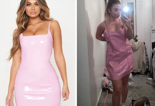В интернет-магазине «PrettyLittleThing» жительница Лидса (Англия) заказала немного легкомысленное облегающее розовое платье, прекрасно подчёркивающее все изгибы тела модели на фотографии. Вот только Лорен напрасно надеялась подчеркнуть свои собственные изгибы Присланное платье повисло на ней некрасивым розовым мешком. Собственно, именно с мешком (причём для мусора) многие люди, увидевшие фотографию женщины, сравнили злосчастный наряд. Также было высказано мнение, что обновка похожа на сдутый детский бассейн. Впрочем, у платья нашлись защитницы — они рассказали, что тоже купили такую модель, но выбрали меньший размер, и в этом случае наряд сел как влитой и выглядел очень неплохо..