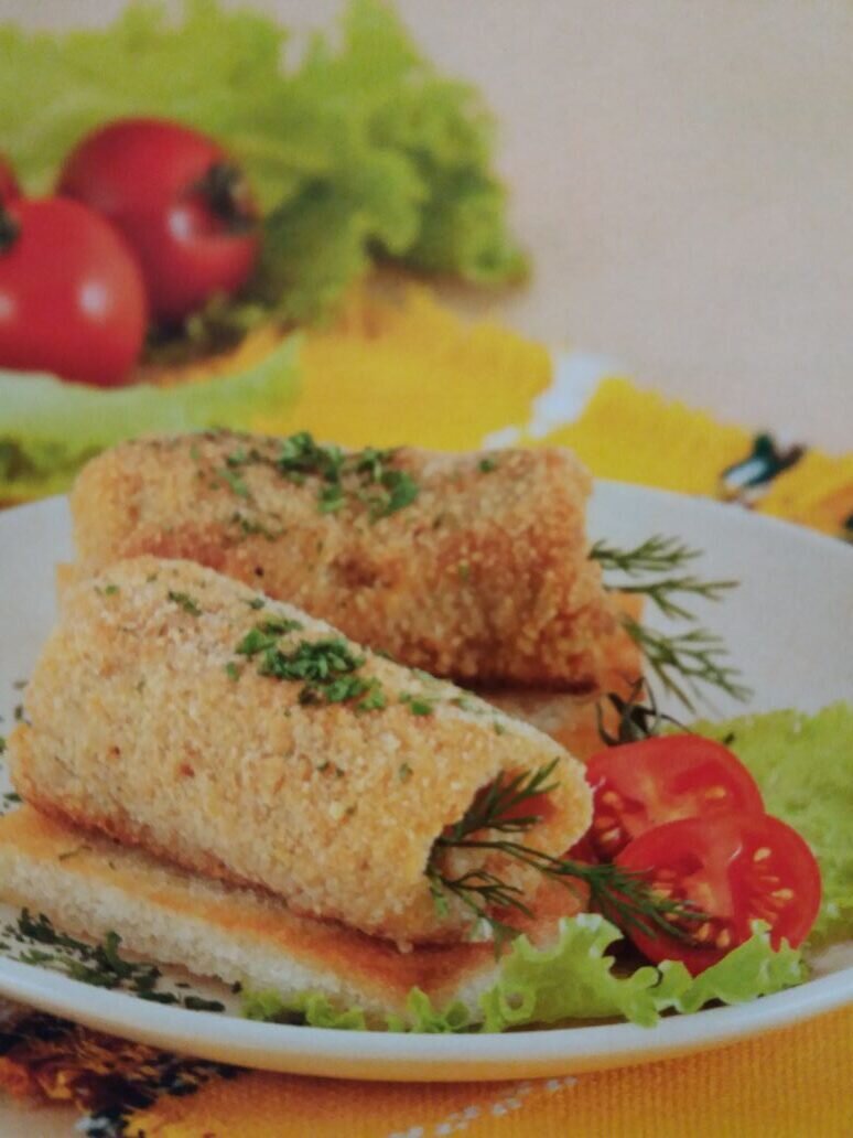 Блюдо из украинской кухни. Состав: Приготовление: 1. Рыбное филе слегка отбить и разрезать вдоль пополам, подсолить, поперчить. В середину уложить кусочек сливочного масла и свернуть рулетиком. Яйцо взбить. 2. Обмакнуть рыбные рулетики в яйцо, затем обвалять в муке, снова обмакнуть в яйцо и запанировать в сухарях. 3. На сковороде с толстым дном разогреть растительное масло. Обжаривать рыбные котлеты со всех сторон до золотистой корочки около 10-12 минут. 4. Ломтики белого хлеба обжарить на другой сковороде на топленом масле до румяной корочки. Подавать готовые котлеты на гренках, посыпав нарубленной зеленью петрушки. Всем приятного аппетита!