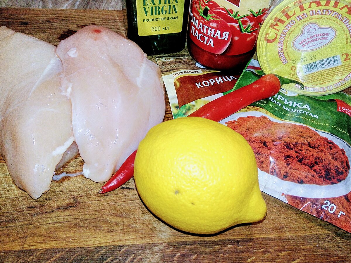 Наше вам с кисточкой! Уважение я имею ввиду. Сегодня будем готовить курьи прелести. Со сметаной. И ещё кое с чем. Рассказываю. Вдохновившись шашлычками из курицы (ссылка на которые ЗДЕСЬ), точнее маринадом, я подумал: А почему бы не приготовить в нём (маринаде) полноценно-тушёную курицу? Подумывал я недолго(мож потому как долго думать не привык - голова болеть начинает), стал в жизнь идею воплощать. Единственное, что я в маринаде заменил - это йогурт. Во первых: денег жалко(объём то его надо увеличить), во вторых: я, честно, не знаю как он себя при нагреве поведёт. Итак. Альтернатива - сметана. Ингредиенты: Куриную грудку порезал на полоски толщиной где-то сантиметр. Лук - крупными кусками. На разогретую сковороду вылил столовую ложку оливкового, добил растительным(чтоб не горело) и быстро обжарил курицу на максимальном огне минуты три-четыре. Добавил лук и перец, обжарил до золотистого цвета. Затем добавил томатную пасту и корицу с паприкой - обжарил минутку. Затем вывалил сметану. За