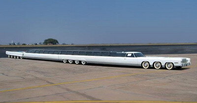 Самая длинная машина в мире была спроектирована Джеем Орбергом, проживающем в калифорнийском городе Бербэнк. Длина автомобиля составляет 30,5 метров, именно эти параметры занесены в Книгу рекордов Гиннеса. Уникальная машина обладает 26 колесами, кабина водителя расположена как в передней части автомобиля, так и в задней. Задняя кабина используется водителем самой длинной машины в мире при движении назад. В связи с огромной длинной, авто не в состоянии передвигаться по большинству городских улиц, так как для разворота требуется слишком большое пространство. Поэтому в основном автомобиль используется в качестве выставочного экспоната, однако помимо этого владелец сдает машину напрокат. Самая длинная машина в мире обладает роскошным салоном, в котором есть все необходимое для отличного отдыха: небольшой бассейн, джакузи, большая кровать, плоский телевизор с множеством каналов (на автомобиле установлена спутниковая тарелка), мощная стерео система.