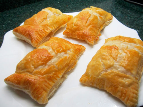 Всем привет,сегодня мы приготовим слоеные пирожки с колбасой и сыром,они будут хрустящими и вкусными,хорошая альтернатива обычным бутербродам. Нам потребуется: Дальше делаекак пирожки из слоеного тестц Разверните рулон с готовым тестом, присыпьте на рабочую поверхность небольшое количество просеянной муки, выложите раскатанное тесто и нарежьте 4 прямоугольника, как это показано на рисунке. На половину каждого нарезанного прямоугольником теста положите кусочки тонко нарезанного сыра и ветчины. Накройте начинку второй половинкой и при помощи вилки или пальцами прищемите края выпечки. Противень застелите специальной бумагой для выпечки и выложите слоеные пирожки с начинкой. Остается смазать поверхность выпечки взбитым желтком от яиц, и затем отправляем в предварительно разогретую духовку. Готовим при температуре 180 градусов, примерно 30 минут, до золотистой корочки После того, как пирожки из слоеного теста будут готовы можно незамедлительно подавать на стол, которые рекомендуется потребл