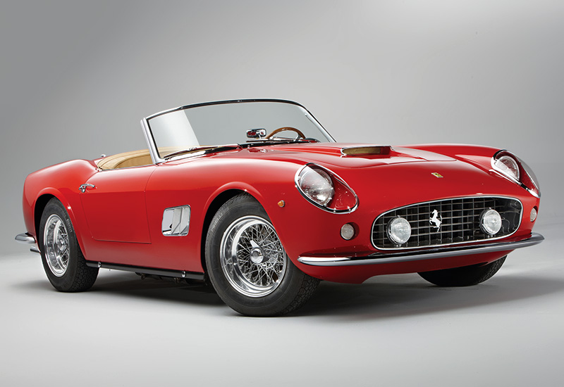 — Очень нравятся многие дорожные модели Феррари 50-60-х, в отличие от гоночных и около-гоночных. Этот кабриолет просто шедеврален, особенно в чёрном цвете. Его морда смотрится как живая, с грозным взглядом круглых фар и изящно полуприкрытым ртом-решёткой. Ну и какая же Феррари без V12? В наше время 12 столь маленьких цилиндров смотрятся очень непривычно.