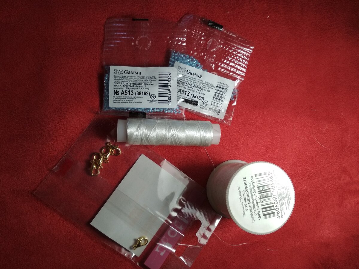 Посмотрев кучу видео решила начать с самого простого , как мне показалось. Американский витой жгут. Сначала прикупила материалы: бисер, иглы, нитки, фурнитуру. Обошлось меньше трехсот рублей. Нитки купила двух видов : мононить и лавсан. Вот такой набор в результате получился Чтобы удобнее было нанизывать бисер, и чтобы он не раскатывался по столу, высыпала его на салфетку из искусственной замши. Для работы решила использовать мононить, мне она показалась удобнее. Закрепила её на застёжке , и начала плетение по схеме. Пока не очень впечатляет. А дальше просто нужно набирать бусинку центральной нити и пять бусин основного цвета, которые и образуют жгут. После нескольких витков уже стало что-то появляться И вот что получилось в конце Может результат и не самый хороший, точнее сказать провальный. Но мне понравилось заниматься плетением из бисера. Буду продолжать. Но к выбору материала буду подходить более внимательно.