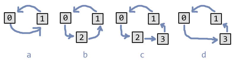Все эти же действия повторяются с клеткой 1. Смотрим куда указывает клетка 1. Мы пришли к клетке 0, цикл завершается.