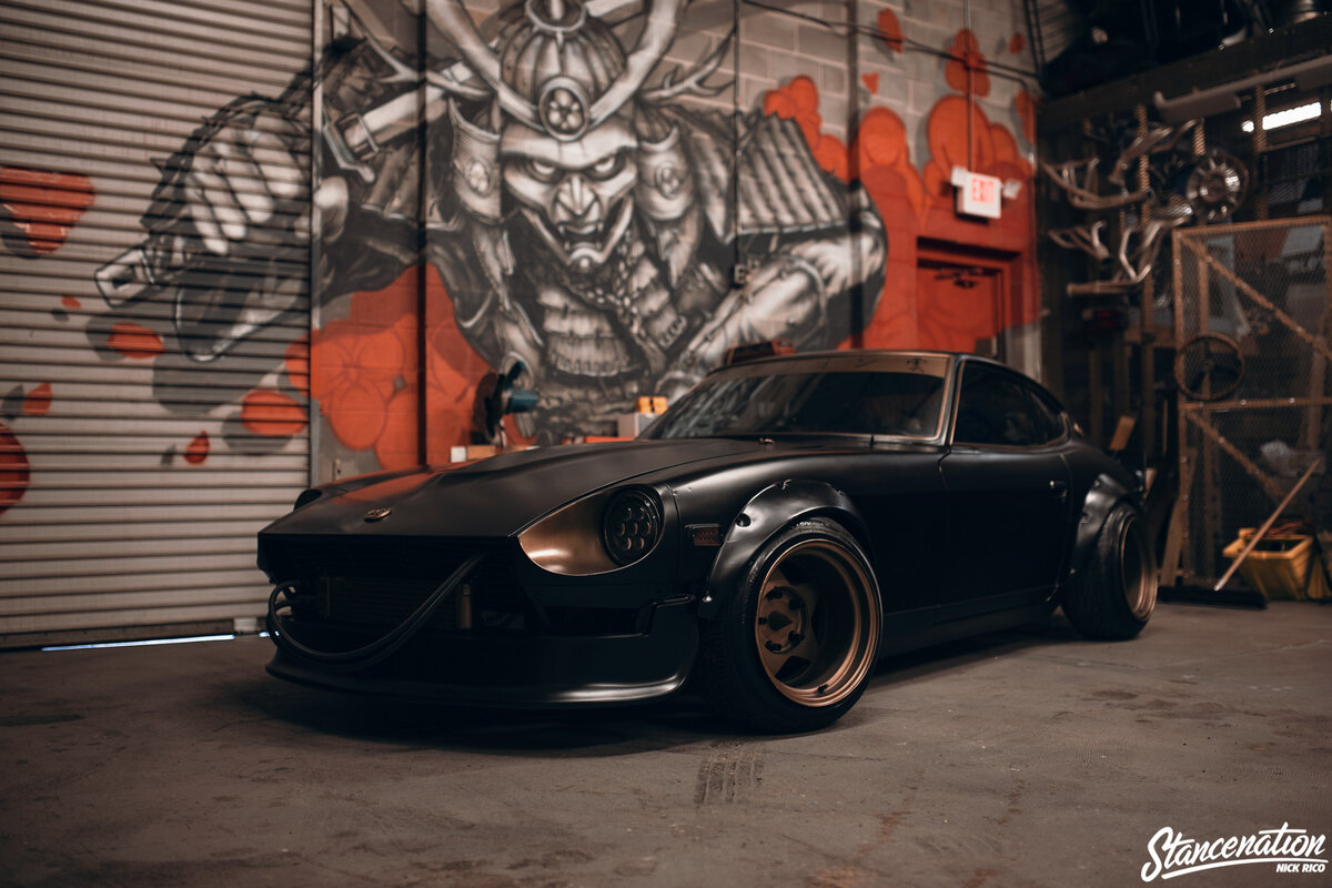 Если вы являетесь поклонником JDM, а также манги/аниме, вы наверняка слышали о Wangan Midnight, которая рассказывает историю одного молодого человека, его друзьях и его проклятого Datsun 240Z, создающих собственную легенду на Вангане. А проклятый этот Datsun потому что его прошлый владелец погиб в аварии, после чего и получил прозвище «Devil Z». А теперь встречайте американскую версию Devil Z по прозвищу LouZfer. Его хозяина зовут Скотт (Scott Koehler) и проживают они в Атланте, штат Джорджия (Atlanta, GA). LouZfer — это блюдо, приготовленное в лучших традициях Страны Восходящего Солнца, обжаренное на масле Американской культуры Хот-родов и приправленное специями Durrty South! Широкий, черный, матовый кузов LouZfer очень напоминает автомобиль анимешного "Бегущего по лезвию", в то время как роспись моторного отсека делает отсылку в сторону классического аниме. Эдакое столкновение двух миров, которое на удивление очень хорошо сочетается в данной сборке. Скотт и его команда гордятся