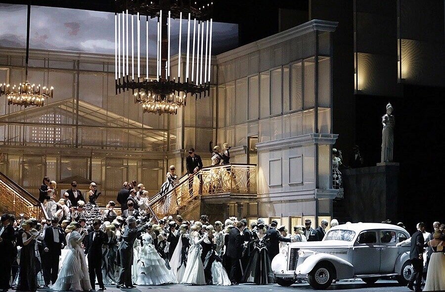 Действие изначально итальянской оперы по замыслу режиссера Давиде Ливерморе происходит в Бостоне. И вот представьте на сцене Большого театра этот коктейль из музыки Джузеппе Верди, фильмов Хичкока, оперного пения и видеоэффектов!