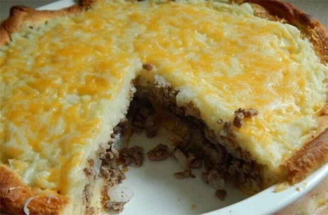 Заливной пирог с мясом и картошкой - сочный и сытный