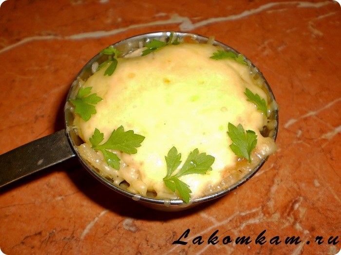 Запекаем 5 -10 минут в разогретой духовке при 180 градусах до расплавления сыра.