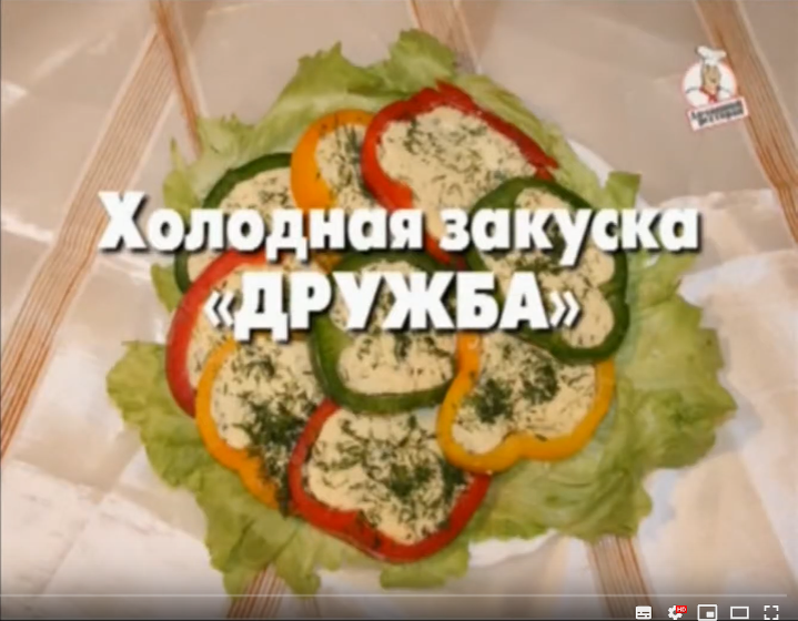Р Это рецепт холодной закуски "Дружба" . Можно сказать что это деликатес из моей студенческой молодости. Готовили на все праздники. Самые доступные и дешевые продукты - плавленные сырки, масло, перец с дачного огорода родителей. Решила не отказывать себе в удовольствии показать эту вкуснятину и напомнить, может кто то тоже вспомнит. Я вырезала из газет понравившиеся рецепты блюд, и потом готовила с девчонками на всякие наши вечеринки. Вот из таких вырезок переклееных в кулинарную тетрадь я и нашла этот рецепт. Кстати видео тоже снято десять лет назад, поэтому и качество так себе.