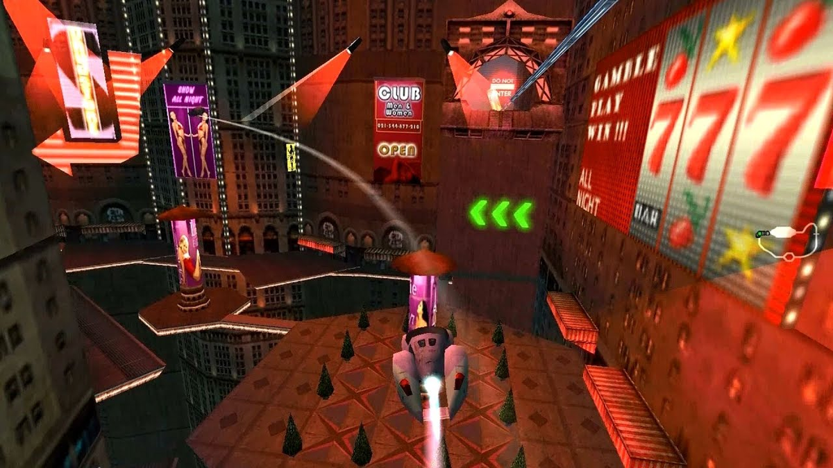 На русский игру перевели как "Погоня за пятым элементом". Игра представляет из себя гонки с вертикальным левел дизайном. С тех пор мне на глаза так и не попадалось ничего похожего, хотя возможно что нибудь аж с 2002 года вышло. Каждый уровень имеет свой запоминающийся дизайн и становится заметно сложнее. По мере прохождения открываются , как и во многих гонках, новые машины имеющие немного различающиеся характеристики, актуальность которых зависит от карты , которую вы решили пройти. К сожалению по сети в неё я поиграть в своё время не мог, по этому про баланс сказать ничего не могу. Конечно сейчас игра будет играться немного сложновато в плане восприятия графики, но сама концепция стоит того, чтобы попытаться.