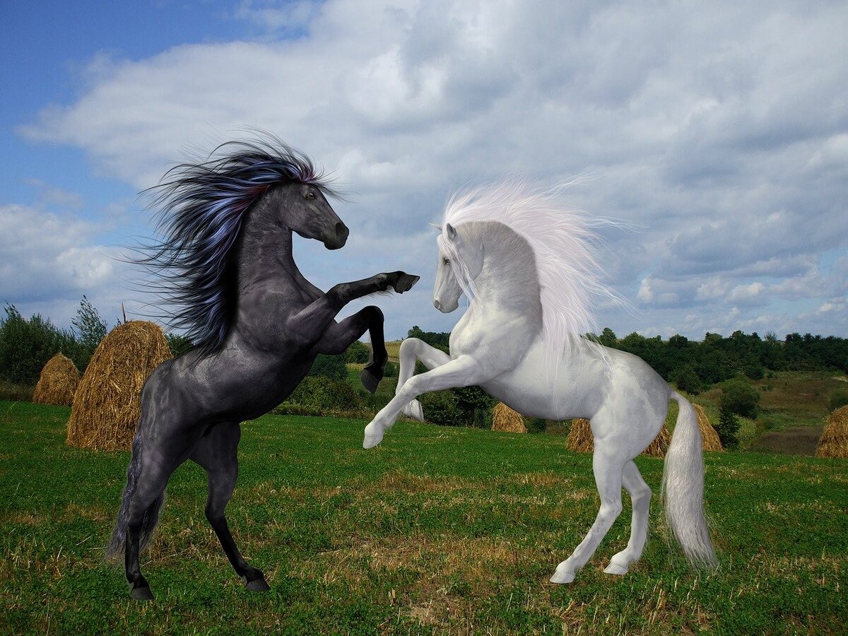 Когда конюх ушел, Зарянка стала искоса поглядывать на Гордона. Белая шерсть ахалтекинца серебрилась в темноте. Гордон вздрогнул и, обернувшись, встретился глазами с черной молодой кобылкой, пристально смотревшей на него. Что-то новое, необъяснимо прекрасное зародилось в могучем сердце коня. Он вытянул шею и коснулся теплыми губами Зорькиной гривы. Та встрепенулась от неожиданности и нежно потерлась головой о его голову. Утомленный Гордон вздохнул и задремал, прижавшись к шее новой подруги.