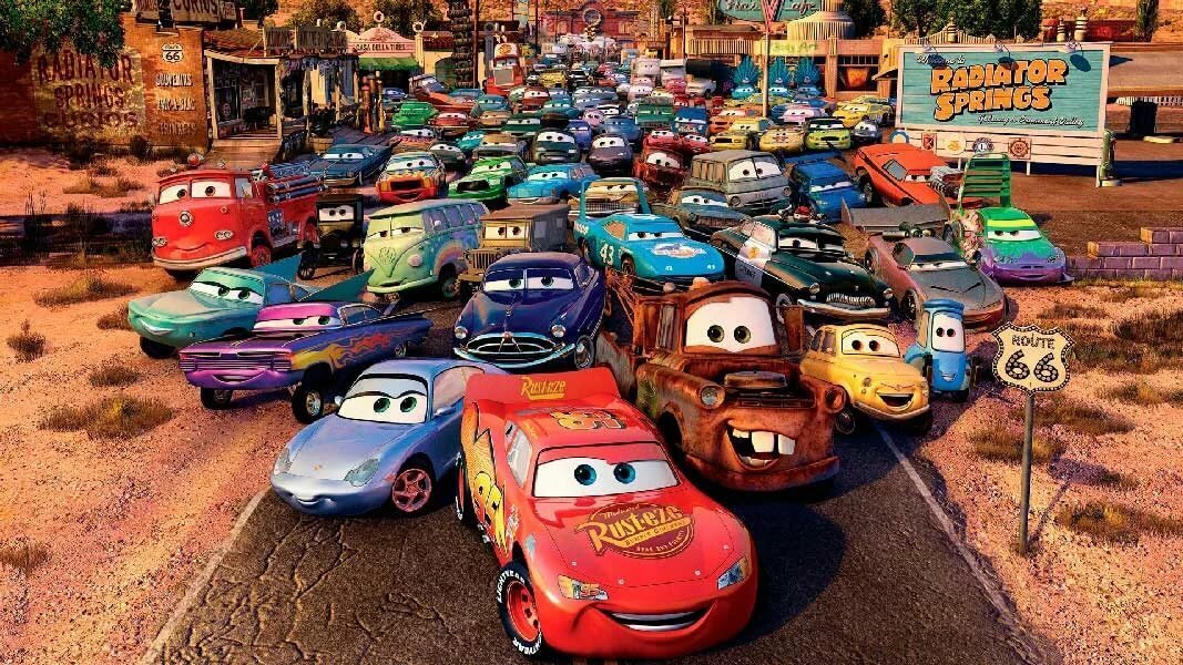 Тачки-это американская полнометражная анимационная комедия 2006 года, режиссера Джона Лассетера, поставленная на студии Pixar. Герой картины — гоночный автомобиль Кубка Поршня по имени Молния МакКуин, привыкший жить только на гоночной трассе. На финальной гонке в сезоне 2005 (Диноко 400) он из-за лопнувших задних покрышек приходит на финиш одновременно с другими участниками — чемпионом Кингом и грубияном Чико Хиксом, вследствие чего организаторы гонок решают провести решающую гонку в Калифорнии. По пути туда, из-за команды уличных гонщиков Маккуин во сне вываливается из везущего его трейлера, Мака, в надежде нагнать его, в темноте сбивается с пути, нарушает все мыслимые и немыслимые правила и оказывается в захолустном городишке Радиатор-Спрингс на Шоссе 66. Там Молнию Маккуина арестовывают за то, что он испортил дорогу. Пока Молния находится под арестом и чинит дорогу, он ближе знакомится с обитателями городка: