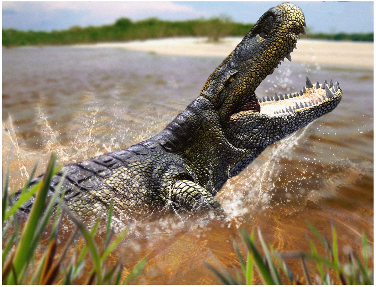 Многие люди полагают, что динозавры были самыми жуткими и опасными существами за всю историю нашей планеты. Тем не менее, в разные эпохи на Земле обитали невероятные животные, которые были куда более опаснее и страшнее, чем динозавры. И сейчас вы в этом убедитесь! Рамфозух - это вымерший род доисторических крокодилов, а также современник самого Мегалодона. Он населял современную Индию в миоцен новой эпохи: около 25-15 миллионов лет назад. В длину эти крокодилы достигали от 8 до 18 метров, что позволяет ученым предположить, что Рамфозухи были самыми крупными крокодилами за всю историю нашей планеты. Впечатлял он не только своими размерами, но и опаснейшей длинной пастью с острыми, как бритва зубами. Благодаря ей он успешно охотился на различных рыб, а иногда даже вступал в схватку с Мегалодоном. В охоте Рамфозуху помогал не только размер и зубастая пасть, но и очень мощный длинный хвост. Ряд ученых полагает, что Рамфозухи и Мегалодоны могли быть практически равными соперниками при опр