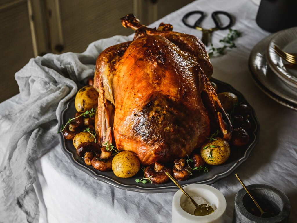 Вам нужно индейка: начинка: Процесс: -Удалите субпродукты из индейки (обычно в сумке), выщипните оставшиеся перья и вытрите их кухонным полотенцем. Вам не нужно мыть его, потому что все нежелательные бактерии, которые могут образоваться или «сидеть» на мясе, позже будут убиты выпеканием. 🙂Поэтому никогда не мойте мясо, потому что, наоборот, вы излишне распространяете бактерии через кухню и раковину. -Смешайте соль с разрыхлителем - это поможет нам получить золотистую кутикулу и размазать индейку снаружи и изнутри. Без смеси мясо всегда требует столько соли, сколько ему нужно. Слегка накройте индейку алюминиевой фольгой и поставьте в холодильник (на противень или в форму для выпечки) на 24 часа. -По истечении этого времени выньте индейку из холодильника примерно за 3 часа до выпечки, чтобы она оставалась при комнатной температуре, прежде чем идти в духовку. -А пока готовим начинку. Очистите лук и мелко нарежьте его (о том, как правильно нарезать лук, смотрите мои советы по приготовлен