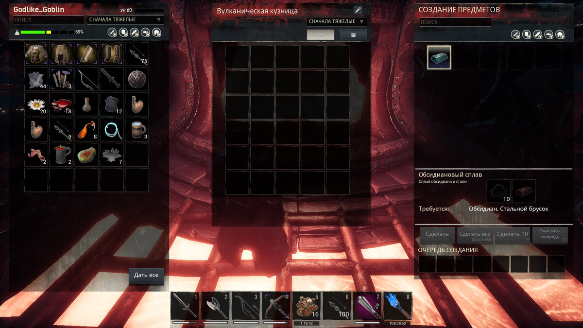 Оружие из обсидиана, довольно сильное оружие, но далеко не самое эффективное в Землях Изгнанников. Даже среди образцов, которые можно крафтить самому. Сам Обсидиан легко добывается в вулканическом биоме. Но вот сделать с добытым ресурсом вы ничего не сможете, пока не пройдете данж Колодец Скелоса.