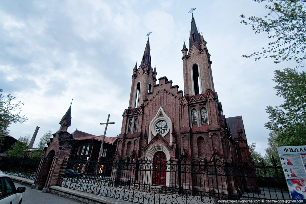 Приветствую читателей! Вот вам немного истории о католическом храме в Красноярске. Он принадлежит епархии Святого Иосифа, которую возглавляет Кирилл Климович. В храме имеется концертный зал для органной и камерной музыки. В 1855 году было дано разрешение на постройку на Римско-католический храм. Постройка завершилась в 1857, сам храм был деревянный и особо ничего из себя не представлял: отштукатурено и выбелено снаружи, а внутри выкрашено белой краской. И к концу 19 века естественно оно обветшало, в последствии чего было принято решение о перестройке. 20 июля, 1908 года началось строительство каменного римско-католического храма во имя Преображения Господня. Размеры церкви были таковы, что она способна вместить в себя тысячу человек. Длина была около 30 метров, а ширина около 15 метров. Строительство было завершено в 1911 году. Если кому-то интересно взглянуть на него, а может быть и приобщится, то Адрес — ул. Декабристов, д. 20. Я лично не верующий и рассматриваю это место, как и