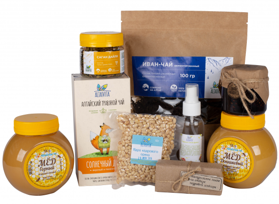 Компания "АлтайВита" приготовила наборы своей продукции со скидкой 15-25 %. Таких наборов больше 20-ти. Вот некоторые из них: Набор Дары Алтая - средний. Состав: