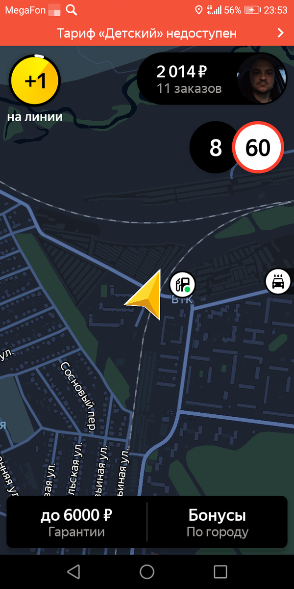 Дорогие друзья,привет. Вот делюсь с вами очередным вечерним выездом в праздничный воронеж. Напомню, что этот месяц катаю в серебрянном статусе, стараясь понять разницу с бронзой. Выехал я как обычно вечером, только вот подзадержался-18:50. Заказы не заставили себя долго ждать. Вот что получилось накатать до полуночи Как видите, там 2000, и это чистыми за 5 часов работы. Откатал я до 2 ночи и сделал еще 4 заказа Тоже довольно приличная сумма за это колличество. В этот вечер я почему-то решил заправиться на 800р. и поэтому хватило только до 2 ночи-ведь надо еще домой попасть. Итого: 2700-800=1900. В принципе, я считаю, что очень даже неплохо для доп. заработка. Что хочу сказать по поводу серебрянного статуса, так это то, что стало приходить больше корпоративных заказов. Пока это все, что удалось заметить. В остальном пока ничего вроде не помянялось-заказы приходят с такой же регулярностью,простой минимальный 5-7 минут. Ну вот и все. Не забывайте писать комментарии, по возможности подпи