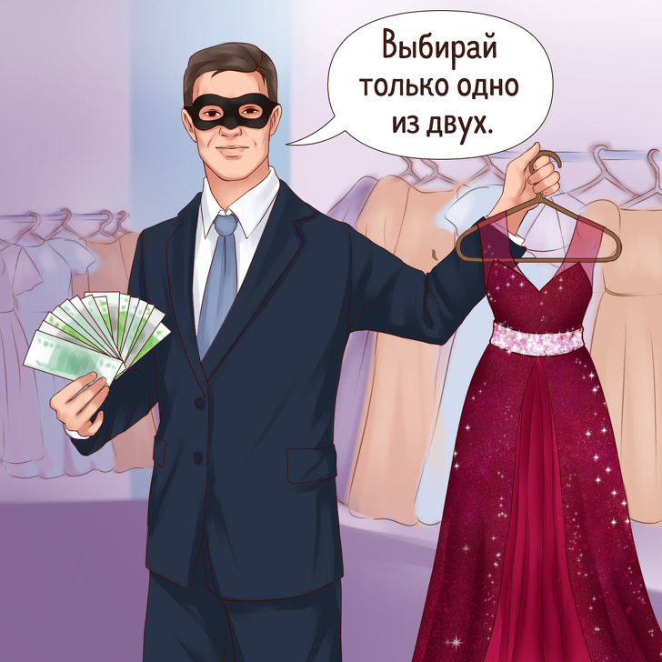 - Вариант № 1. Пройдите «тест незнакомца». Захотелось купить новое платье? Представьте перед собой человека, который в одной руке держит ваше будущее приобретение, а в другой — его денежный эквивалент. Что вы выберете? Если тянет в сторону денег, значит, не так уж и нужна вам эта вещь.