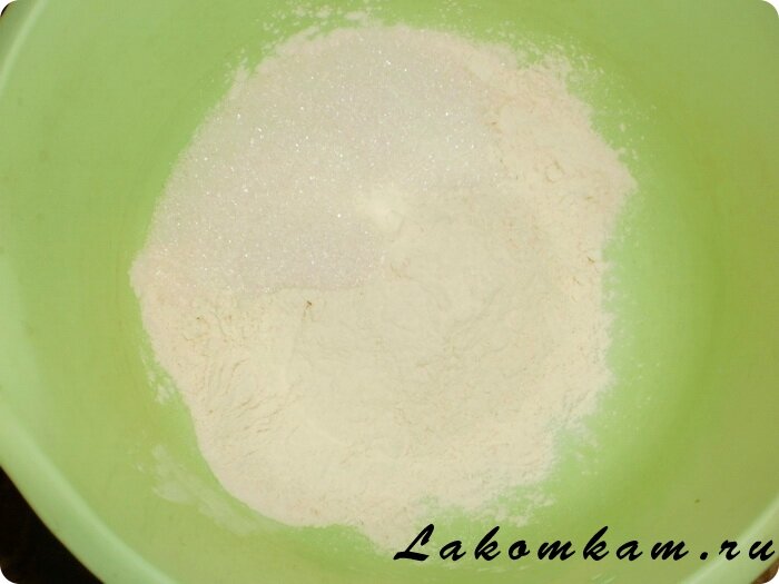 Ингредиенты: пшеничная мука — 120 грамм; вода — 80 миллилитров; сахар — 60 грамм; растительное масло — 50 миллилитров; сода гашеная уксусом — 1/3 чайной ложки.