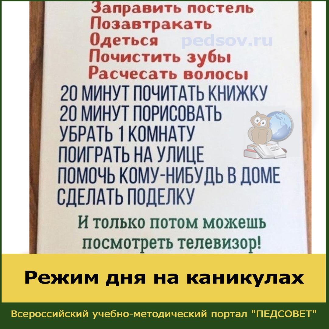 Распорядок дня на каникулах