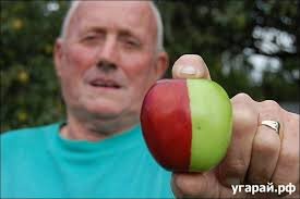 72-летний британец Кен Морриш вырастил двухцветное яблоко, у которого одна сторона красная, а вторая-зелёная.