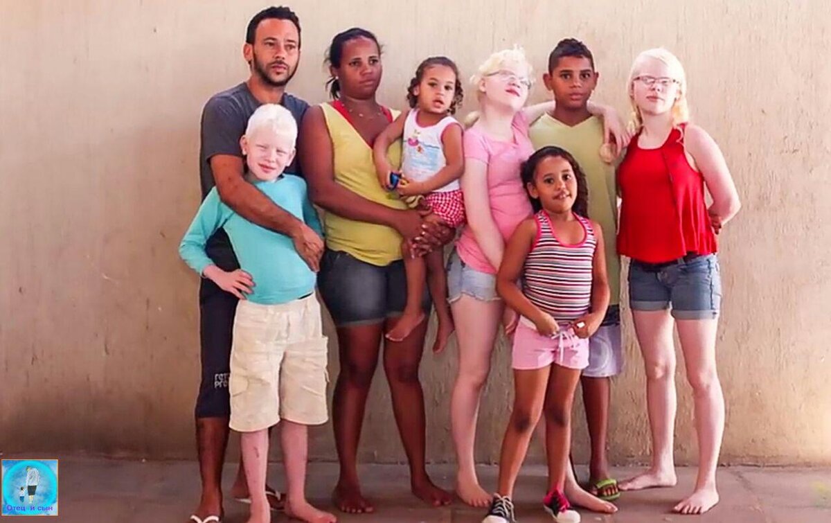 Приветствую вас, дорогие читатели и подписчики моего канала! Сегодня мы поговорим о самых удивительных и уникальных семьях! Одна из таких семей живет в Бразилии. Мама и папа обычные бразильцы, но каким-то чудом среди 6 детей, трое родилось с полностью белой кожей. Чтобы такое случилось в теории, это вероятность 1 к 17 тысячам, а тут сразу 3 ребенка.