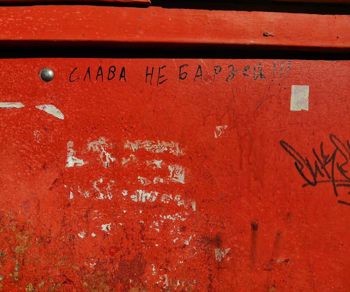 Вот жил себе Слава. Жил, борзел, матерел, лез на рожон, грыз семки у парадной, сплевывая через правый уголок рта. Малежика, может, слушал на весь двор, выставляя колонки в окно, орал благим матом на соседей, когда был пьян. Пока не появилась вот эта надпись. И сразу Слава вдруг осознал свою неправильную жизнь, вмиг образумился, завел семью, обабился, сменил семки на фисташки (или даже креветки), спортивки с лампасами на домашние треники с вытянутыми коленками, золотые коронки на керамику, успокоился и стал жить ровно, не отсвечивая. А надпись - вот она, осталась, и он проходит мимо каждый раз, выйдя в магазин за хлебом или в аптеку за настойкой боярышника, и плечи расправляет, ностальгируя: были ж времена... Пока его в бок жена не ткнет этими же словами. Не борзей, мол, Слава, помни свое место. Только для Славы борзость эта не та, что раньше: скукожилась, измельчала, в быт превратилась. Борзеть для него сейчас - невзначай одеяло на себя оттянуть, когда спит, оголив ляжку жене, или съе