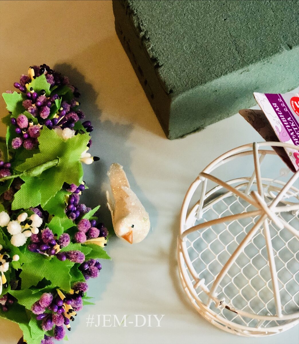 Сегодня оформим декоративную клетку цветами и птичкой Нам необходимо: Флористическую губку обрезаем по размерам клетки и плотно вставляем ее, высота губки примерно 1/4 от высоты клетки Цветы разъединяем и обрезаем при необходимости. Вставляем в губку со всех сторон, чтобы получился полушар и не было видно губки. Отрезаем маленький кусочек ветки и привязывем с двух сторон бечевку чтобы получились качели на которые мы приклеиваем птичку. Качели провязываем к верхней планке клетки.