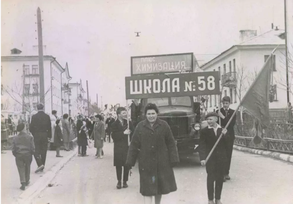 ПГТ Дербышки. Торжественное шествие по улице Правды (школа №58) 1 мая. Шествие по ул.Правды.