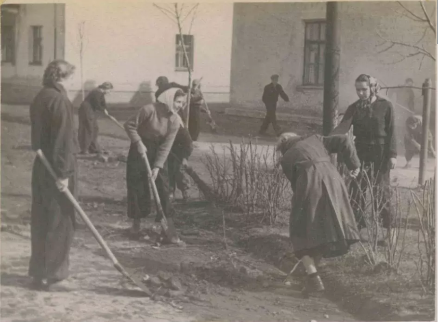 Субботник на Каштановой, дом 3 (Дербышки) Ленинский субботник. Справа в кадре столбик около газового колодца. Столбик до сих пор жив и его можно видеть в панорамах Яндекса.
