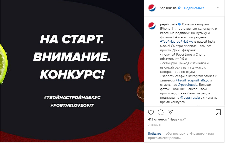 Новые маркетинговые технологии на службе у мирового гиганта. Pepsi Russia применил в своей SMM стратегии инструмент Insta-маскок. Теперь поклонники популярного напитка могут выиграть Айфон 11, запустив селфи в Instagram Stories с хэштегом