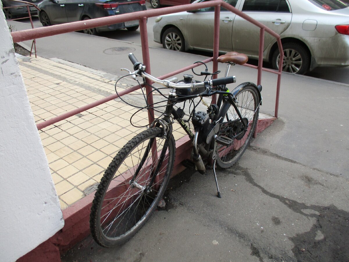 Теперь о минусах велосипеда с мотором. Первый минус -это, то что нужно разбавлять бензин маслом - это очень не удобно особенно в домашних условиях. Второе - это плохое качество двигателя и маленький ресурс, в крайнем случае так написано на некоторых форумах, при этом главный плюс - это маленькая стоимость в районе 22 тысяч рублей.