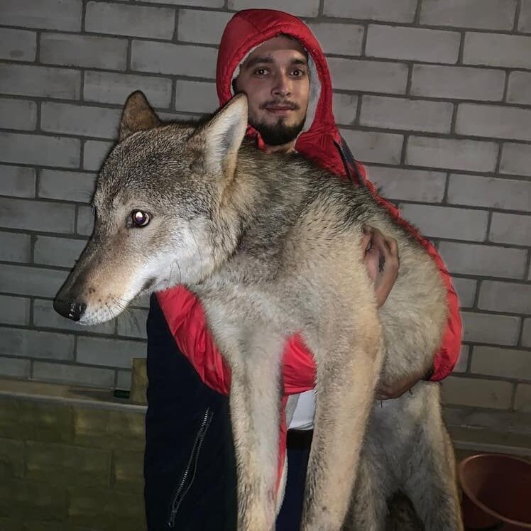 Раздался звонок, и голос знакомого охотника рассказал что на охоте они убили волчицу и в норе остался волчонок, возьмешь? Спрашивал он."я не буду осуждать охотников,это решат каждый сам , но сразу скажу что слышать это было не приятно" Я не думая сразу согласился, стало жалко волчонка,он бы сдох в лесу. Привез я его домой крошечного, ему было 2 недели, сидел у меня на лодошке и пил молочко.( тут заключается суть того что сколько его не корми он все равно в лес смотрит! Будь он на неделю старше так бы и вышло ,но тут он принял нас за родителей чавкая вкусняшками и молочком.) Волчонок рос не по дням, а по часам и уже носился по дому как ненормальный, снося всё на своем пути.попытки сделать хоть какой то временный вальер не увенчались успехом он прогрызал всё. Особенно он подружился с моей собачкой в последсвии воспринимал её за вожака. В возрасте 3х месяцев отвезли его к ветеренару сделали все необходимые прививки и паспорт.ветеринар объяснил что ничего страшного в нем нет и они да