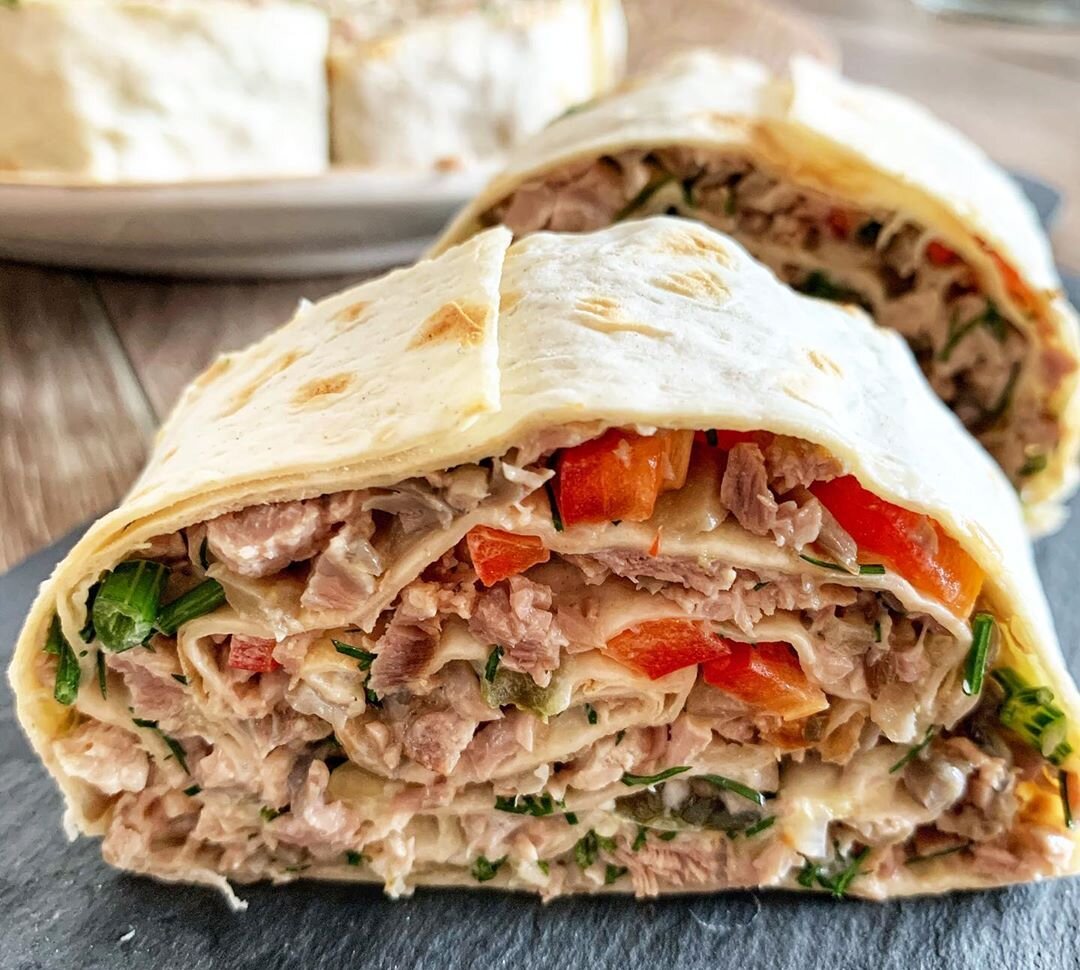Берём лист лаваша, смазываем оставшимся соусом и выкладываем начинку. Сворачиваем рулет и убираем в холодильник на час/два. Рулет лучше обернуть пищевой пленкой. Затем достаём и едим.