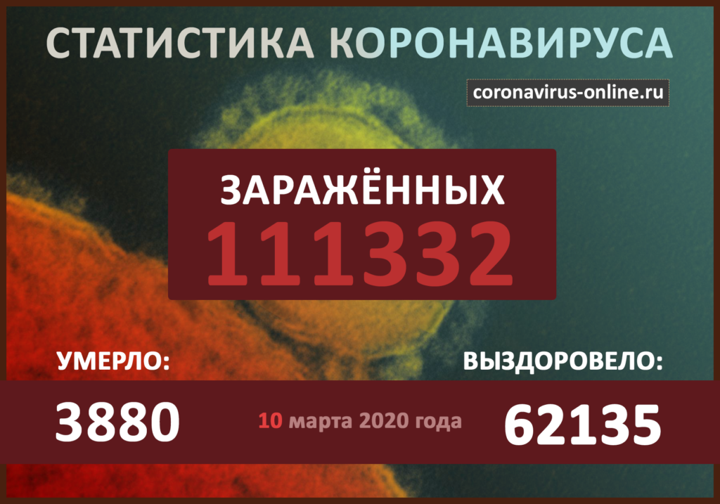 Статистика коронавируса на 10 марта 2020 года (заражено, выздоровели, погибли)