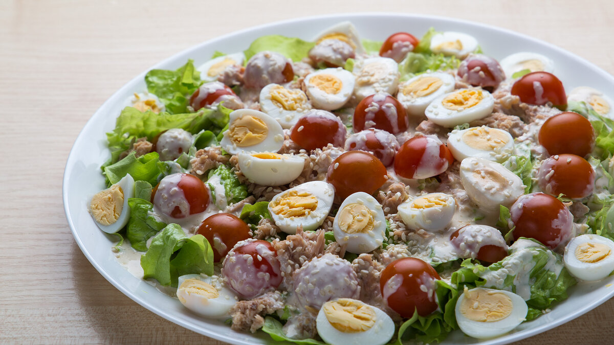 5. Выкладываем яйца на тунец