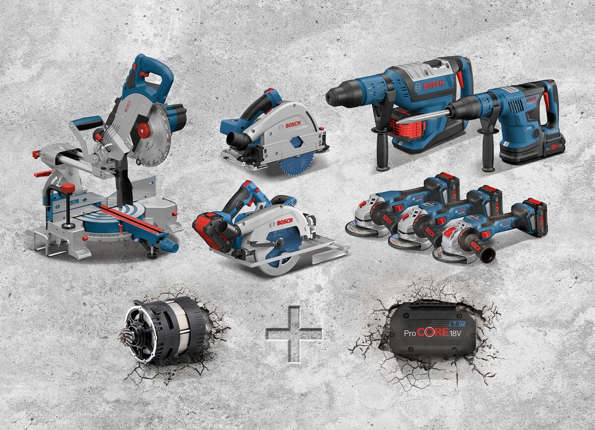 Компания Bosch представила инструменты, ранее считавшиеся недоступными в классе 18-вольтовой аккумуляторной техники. Новые дисковые пилы, угловые шлифмашины и перфораторы сравнятся по производительности с сетевыми аналогами мощностью от 1 до 1,8 кВт. Мощный ProCORE 18 Вольт Ключ к новым возможностям — оптимальная координация бесщеточного мотора BITURBO с новейшей электронной начинкой и энергоемкой батареей ProCORE 18 В. Это взаимодействие полностью раскрывает потенциал батареи ProCORE 18 В при энергоемких работах. Машины Bosch BITURBO с одной компактной батареей ProCORE 18 В емкостью 8 Ач или 12 Ач обладают такой же мощностью, как инструменты конкурентов, требующие для работы две батареи. Это дает преимущество: уменьшение веса и размера инструмента, как следствие, более легкую работу с ним. Инструменты из линейки BITURBO вместе с аккумуляторами и зарядными устройствами полностью совместимы со всем оборудованием Bosch 18 В. Технологичнее Высокая мощность — не единственное отлич