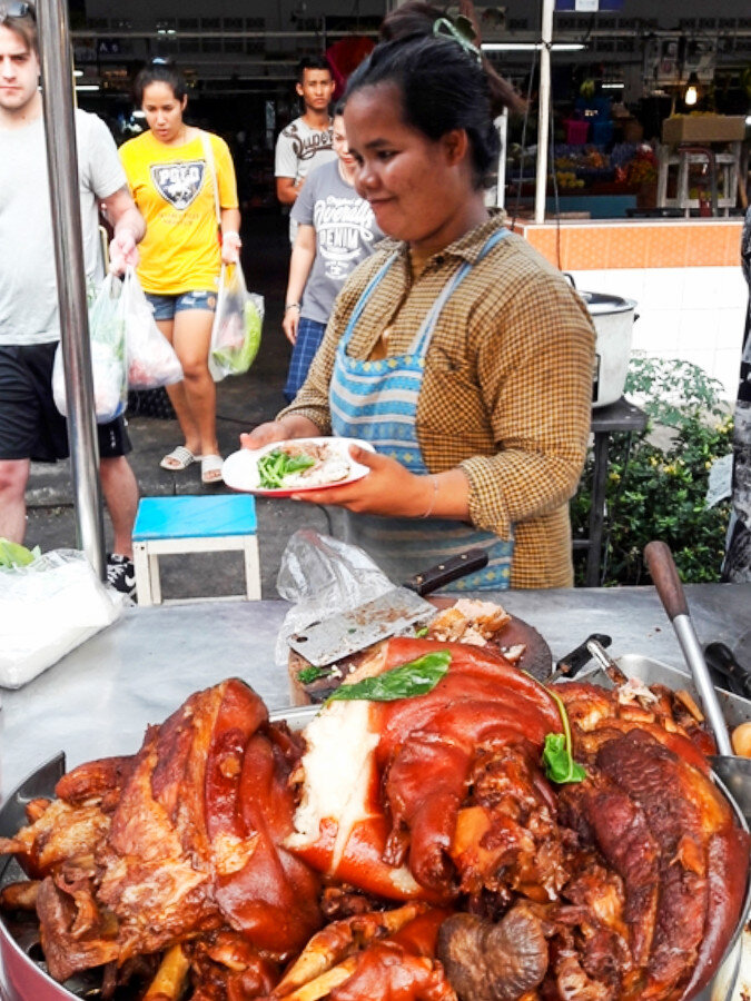 Тайская кухня - одна из самых экзотических в мире. Долгое время она заимствовала все самое лучшее из индийской, китайской, малайской и европейской кухонь. И в результате мы можем отведать удивительные и необычные блюда с "Тайской индивидуальностью" Именно про одно из таких блюд я и хочу Вам рассказать. Корни его уходят в Китай, но кое что тайцы привнесли и своего. Као Ка Муу - это свиная рулька, которую долго варят в пряном бульоне. Сам способ долгого томления, заимствован у китайцев, впрочем как и смесь для бульона. Ее так и называют "Китайская смесь пяти специй" или "Усяньмянь". В состав смеси входят: бадьян (он же звездчатый анис), корица, сычуаньский перец, гвоздика и семена фенхеля. В Китае для подобного блюда используют более жирные куски свинины и курицу. А в Таиланде для Као Ка Муу используют свиную рульку, так как тайцы больше ценят не жир, а содержащие коллаген - соединительные ткани: жилы, хрящи, кожа. После длительной варки весь этот коллаген становится очень нежным и вку