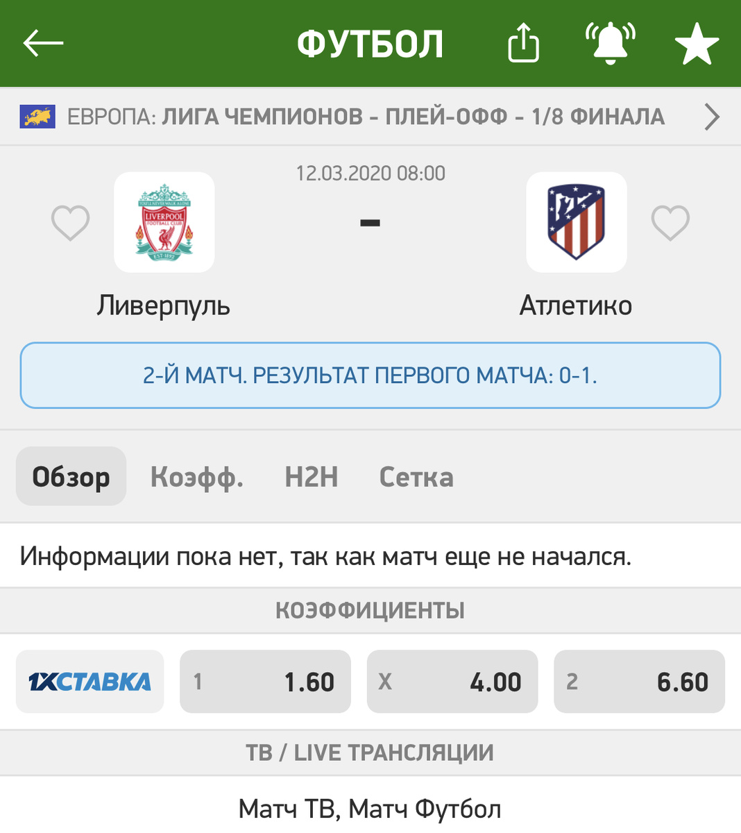 11 марта будет БИТВА за выход в 1/4 финала Лиги чемпионов сезона-2019/2020 сойдутся две команды «Ливерпуль» и «Атлетико» Крутейшая команда Юргена Клоппа примет до боли прагматичный коллектив Диего Симеоне. В первом поединке в Мадриде испанцы выиграли со счётом 1:0. Начало прямой трансляции на «Матч ТВ» в 23:00 мск. Шансы у обоих команд огромные, можно сказать равные. В первом матче в Мадриде «Атлетико» забили быстрый ГОЛ и сосредоточились на обороне. Диего Симеоне нейтрализовал атакующую машину Клоппа В матче не сыграют: Ливерпуль: 1.Алисон 2.Клайн Н. 3.Ларуси Я. 4.Шакири Дж Под вопросом: Хендерсон Дж Атлетико: 1.Поведа Д Под вопросом: Лемар Д Прогноз на матч: Ливерпуль» действующий победитель Лиги чемпионов. В АПЛ красные бьют рекорды, идут на первом месте на 25 очков обгоняют ближайшего конкурента. 1)Атлетико забивал в 12 последних домашних матчах в ЛЧ. Ливерпуль пропускал в 11 из 13 последних выездных матчей в ЛЧ. Команды забивали меньше 2 голов во